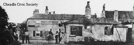 The image is of the Crown Inn, Cheadle, demolished in 1862. Maybe this was one of the locals frequented by Mary Hodkinson's dad when the Hodkinson family lived in Cheadle in the 1830s. (Photograph: Cheadle Civic Society.2)