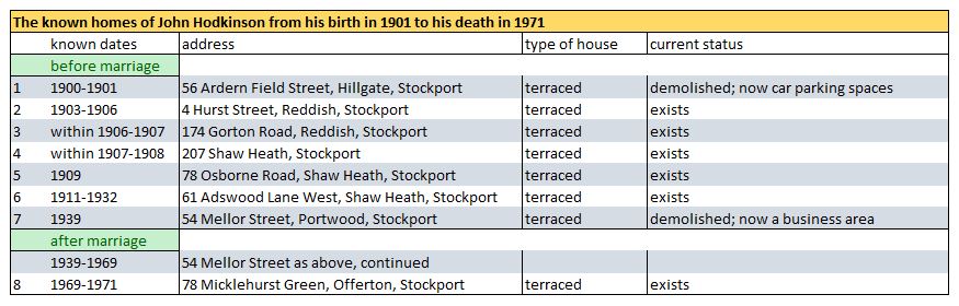 Jack Hodkinson left his home at 61 Adswood Lane in about 1932. The next record of his address is in the 1939 Register. He was then living at 54 Mellor Street, Portwood, Stockport. Just down the road, at number 46, was the home of his future wife, Mary. When they married, his wife moved from her home to his home, and they spent the next thirty years living in the same place.